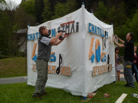 Pour cette occasion, nous avons décidé de célébrer dignement cet anniversaire le Samedi 17 mai 2014, afin que cet évènement reste gravé dans nos mémoires. Les préparatifs ont débuté quelques semaines plus tôt. Des groupes de musiciens se sont retrouvés autour d'une table pour échanger des idées, créer, innover.... L'historique et les décorations ont été élaborés au travers de photos, archives, papier crépon, peinture et autre pour apporter une touche de gaieté, une touche humoristique et une touche nostalgique à cette belle journée.