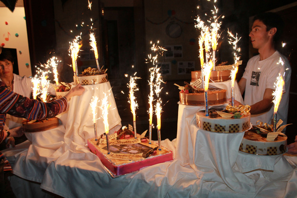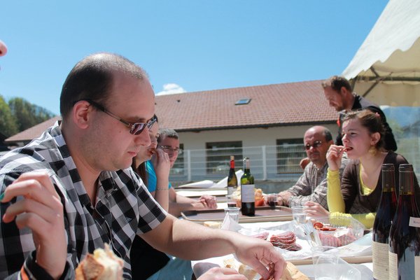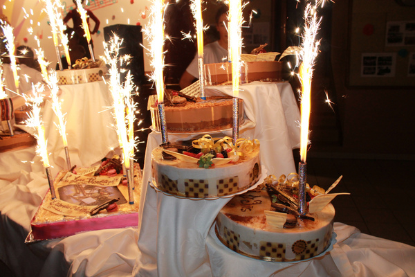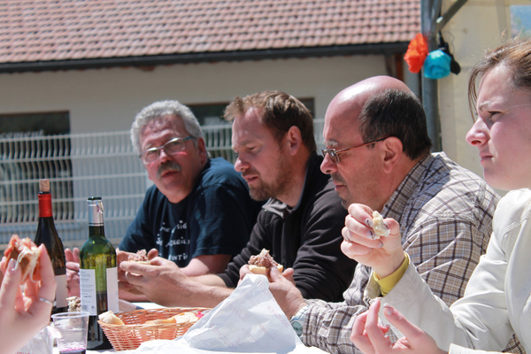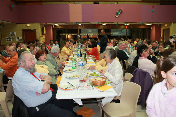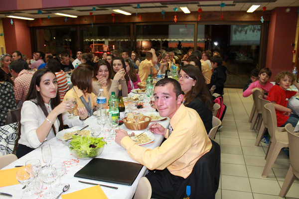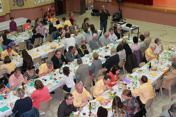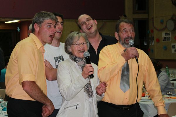 Après un vin d'honneur servi sous chapiteau, la soirée s'est poursuivie en toute convivialité d'un repas avec une animation karaoké. L'arrivée d'un magnifique gâteau d'anniversaire marquera l'un des temps fort de cette fête. Les musiciens des deux sociétés ainsi que tous les invités se sont partagés ce moment de bonheur avant de poursuivre tard dans la nuit dans une ambiance euphorique.